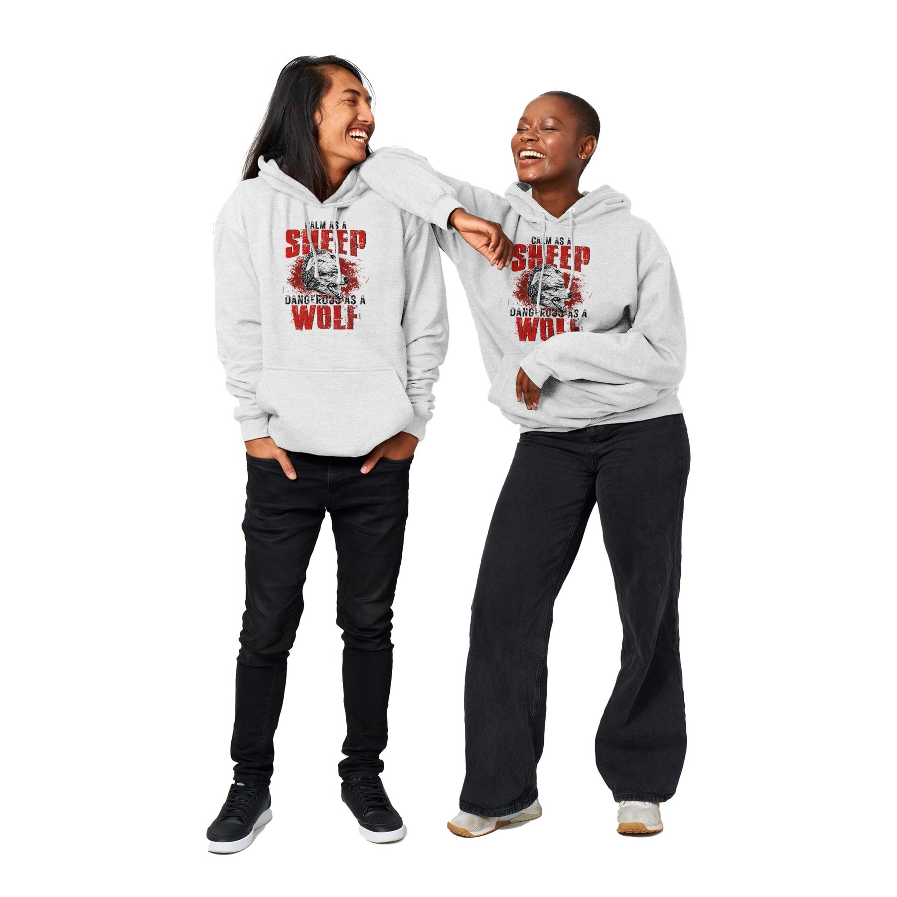 Are you looking for a Hoodie that perfectly captures the essence of duality, where tranquility meets fierce determination? Look no further! Our "Calm as a Sheep, Dangerous as a Wolf" Hoodie is the epitome of this unique blend, offering comfort, style, and a powerful statement.